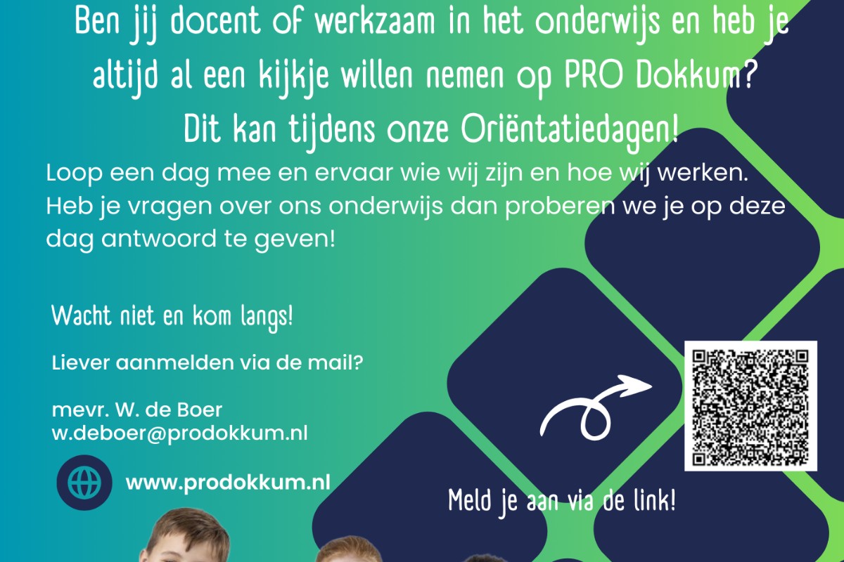 Ben jij docent of werkzaam in het onderwijs en heb je altijd al een kijkje willen nemen op PRO Dokkum? Dit kan tijdens onze Oriëntatiedagen.